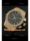 Hublot Classic Fusion Swiss Watch, esfera de carbón, estuche de oro rosado
