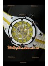 Hublot King Power Ferrari Edición Réplica Suiza-Malla blanco/amarilla