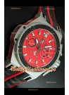 Esfera roja con 2 sub diales funcionales como el auténtico. Ventana de fecha funcional