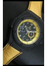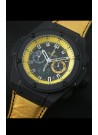 Dial Negro con 3 Sub Diales Funcionales e Indicador de Fecha con Marcadores de Hora Color Amarillo y Bisel Interno Amarillo
