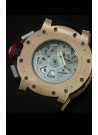 Caja de Acero Inoxidable Solido chapada en Oro Rosado con Bisel Rotatorio y parte trasera abierta.