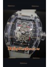 Caja especialmente diseñada con revestimiento PDV solido a través del cual se puede ver, completada con Marcas y Grabados Richard Mille