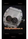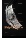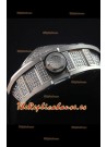 Caja de Titanio de Gran Espesor con un gran acabado mate, con tornillos de Titanio encrustados y Diamantes creados en laboratorio en el Dial y en los lados de la Caja.