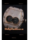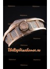 Caja con Revestimiento de Oro Rosado de 18K, con Diamantes creados en laboratorio incrustados en el Dial y los lados de la Caja.