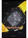 Richard Mille RM011-03 Reloj con Caja de Carbón Forjado color Negro de una sola Pieza en Correa color Amarillo