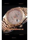 Rolex Day-Date 40MM Reloj Suizo en Oro Rosado y Dial texturizado en Oro Rosado con Numerales en Numeros Romanos
