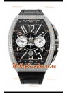 Franck Muller Vanguard V45 Cronógrafo Acero 904L Dial Negro con Diamantes Reloj Suizo