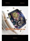 Richard Mille Super Clone RM088 Smiley Tourbillon Cerámica Blanca Reloj Correa Velcro
