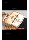Correa de Goma Curvada Marrón con Cierre Plegable de Acero chapado en Oro Rosado completada con Marcas y grabados Patek Philippe. Un Cierre Muy Actualizado para esta serie con marcas/grabados mucho más precisas.