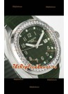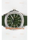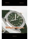 Dial Verde Texturizado con Ventana de Fecha. Bisel con Diamantes Corte Suizo