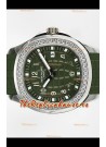 Correa de Goma Curvada Verdecon Cierre Plegable completada con Marcas y grabados Patek Philippe. Un Cierre Muy Actualizado para esta serie con marcas/grabados mucho más precisas.