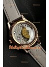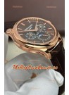 Movimiento Suizo Genuino 9015 ensamblado para parecerse al movimiento auténtico Patek Philippe estilo calibre PP 324. Rotor, puente y Grabados actualizados en el movimiento con rotor bañado en Oro Rosado con el sello de Patek Philippe