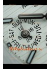Dial Blanco con 3 Sub Diales Funcionales para los Indicadores de Dia, Mes y Fecha. Fase Lunar funciona como función de Dia y Noche