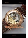 Movimiento Suizo Genuino 9015 ensamblado para parecerse al movimiento auténtico Patek Philippe estilo calibre PP 324. Rotor, puente y Grabados actualizados en el movimiento con rotor bañado en Oro Rosado con el sello de Patek Philippe