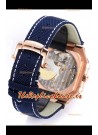 Dial Azul con Indicador de Dia y Fase Lunar funcional (Indicadores de Dia y Noche), Sub Dial para Manecillas Segunderas e Indicador de Fecha