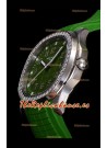 Dial Texturizado y Colorizado Verde con Ventana de Fecha a las 3 en Punto. Bisel de Diamantes