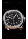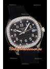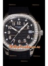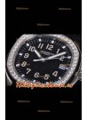 Dial Texturizado y Colorizado Negro con Ventana de Fecha a las 3 en Punto. Bisel de Diamantes