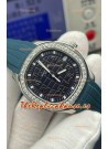 Genuino Movimiento Suizo 9015, Ensamblado para Parecerse al Movimiento Auténtico Patek Philippe PP 240 Calibre. Rotor, Puente y Grabados en el Movimiento actualizados, con Rotror chapado en Oro Rosado con el sello Patek Philippe.
