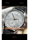 Dial Plata con Indicadores Funcionales de Reserva de Energia, Indicadores de Manecillas Fecha y Segundos