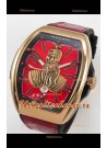 Dial Rojo con Indicador de Fecha a las 6 en punto.