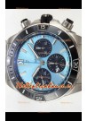 Dial Azul Hielo con 3 Sub Diales Funcionales y Ventana de Fecha.