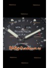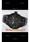 Dial Negro con Indicador de Dia y Mes a las 12 en Punto, Indicador de Dia y Noche a las 6 en Punto y Manecillas Largas con Indicador de Fecha