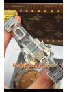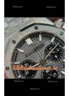 Disposición de la Maquinaria Idéntica al Movimiento Audemars Piguet Calibre 4401 utilizado en los Auténticos relojes Audemars Piguet Offshore.. Construido sobre la Genuina Arquitectura del Movimiento Suizo 7753 con Función de Cronómetro Funcional como como el auténtico con manecillas Segunderas corriendo en el Dial de las 12 en Punto