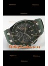 Disposición de la Maquinaria idéntica a la del Movimiento Audemars Piguet 3126 Calibre utilizado en los Relojes Auténticos Audemars Piguet Offshore, fabricado con la arquitectura del Genuino movimiento Suizo 7753, con cronómetro funcional como el original
