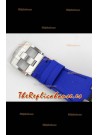 Dial Azul con motivo “Méga Tapisserie”, con tres Sub Diales Funcionales y Ventana de Fecha a las 3 en Punto.
