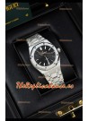 Dial Negro con Ventana de Fecha a las 3 en Punto y Bisel de Acero Esmerilado, idéntico al Original.
