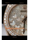 Reloj Rolex Datejust Super Clone con Dial de Mariposa Moissanitas de 31MM en Oro Rosado