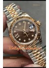 Reloj Rolex Datejust Super Clone Dial Marrón Dos Tonos Oro Rosado 28MM