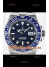 El mejor Rolex GMT replicado hasta la fecha. El primer modelo de Rolex en adoptar una Caja y Correa de Acero 904L, que es el mismo acero usado por Rolex