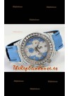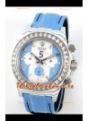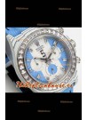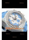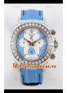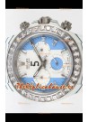 Dial Azul/Blanco. Tres Sub Diales Funcionales que funcionan en conjunto con la función de cronómetro, como en los originales. Sapphires Bezel