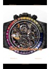 Rolex Daytona Blaken Carbono Negro Reloj Réplica Suizo Espejo 1:1 Dial Skeleton Movimiento Cal.4130