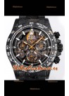 Rolex Daytona Blaken Carbono Negro Reloj Réplica Suizo Espejo 1:1 Dial Skeleton Movimiento Cal.4130