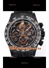 Rolex Daytona Blaken Carbono Negro Reloj Réplica Suizo Espejo 1:1 Dial Skeleton Movimiento Cal.4130