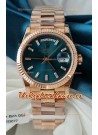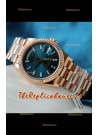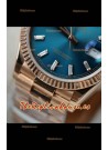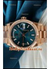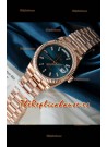 Reloj Rolex Day Date Super Clone Oro Rosado Dial Dorado Azul Numerales Cristal 36MM - Calidad Espejo 1:1