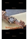 Dial de Moissanitas Pavimentadas con Númerales de Hora en Romanos Oro Rosado y Ventana de Fecha a las 4. Diamantes Flotantes característicos en el Dial.