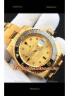 Rolex Submariner Japonés Reloj Réplica Caja en Oro Amarillo Bisel Negro