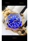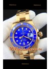 Rolex Submariner Reloj Réplica Japonés Caja en Oro Amarillo Dial Azul