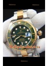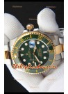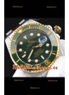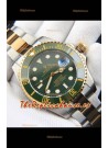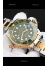 Rolex Submariner Reloj Réplica Japonés Caja Oro Amarillo en Dos Tonos Dial Verde