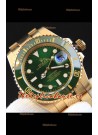 Rolex Submariner Reloj Réplica Japonés Caja en Oro Amarillo Dial Verde
