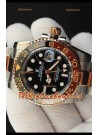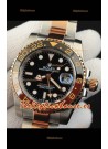 Rolex GMT Masters II 2 Tone Japonés chapado en Oro Rosado Reloj Réplica Dial Negro
