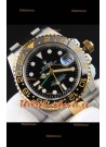 Rolex GMT Masters II 2 Tone Japonés chapado en Oro Rosado Reloj Réplica Dial Negro