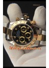 Rolex Daytona Movimiento Japonés Dos Tonos Caja de Oro Reloj en Dial Negro