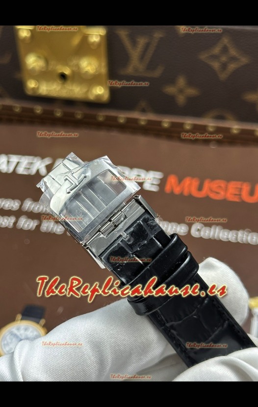 Dial Plata con Indicadores Funcionales de Reserva de Energia, Indicadores de Manecillas Fecha y Segundos