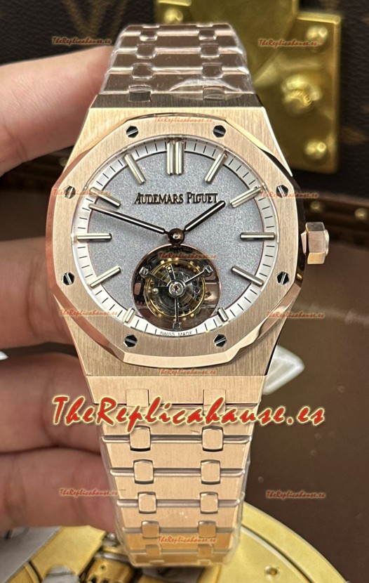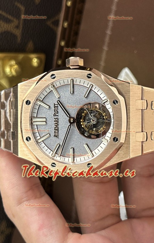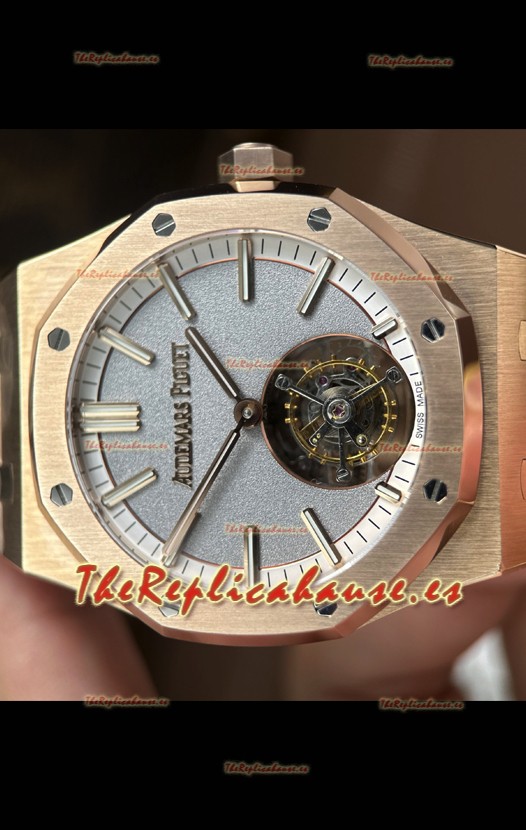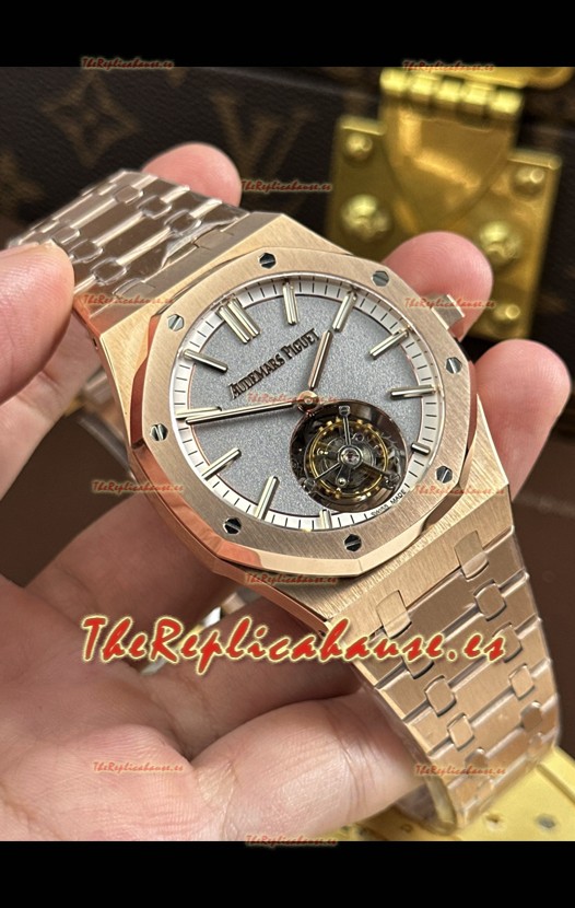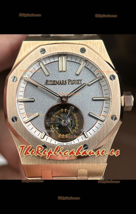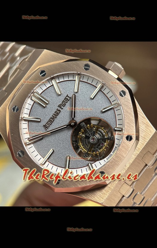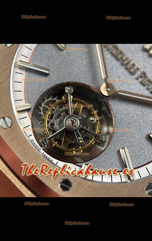 Audemars Piguet Royal Oak 26730OR Tourbillon Volante de 41 mm en Oro Rosado 904L con Dial Gris.