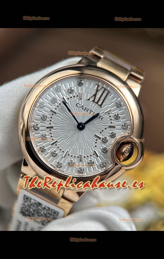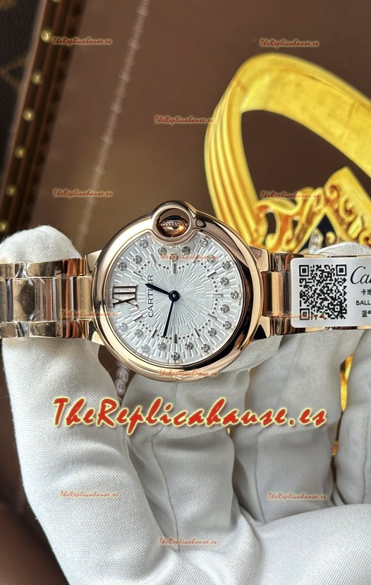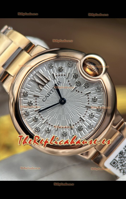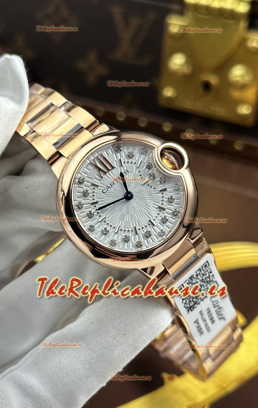 Ballon De Cartier Cuarzo Suizo Calidad Espejo 1:1 33MM en Oro Rosado