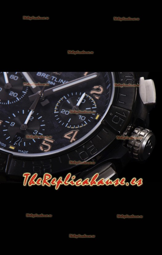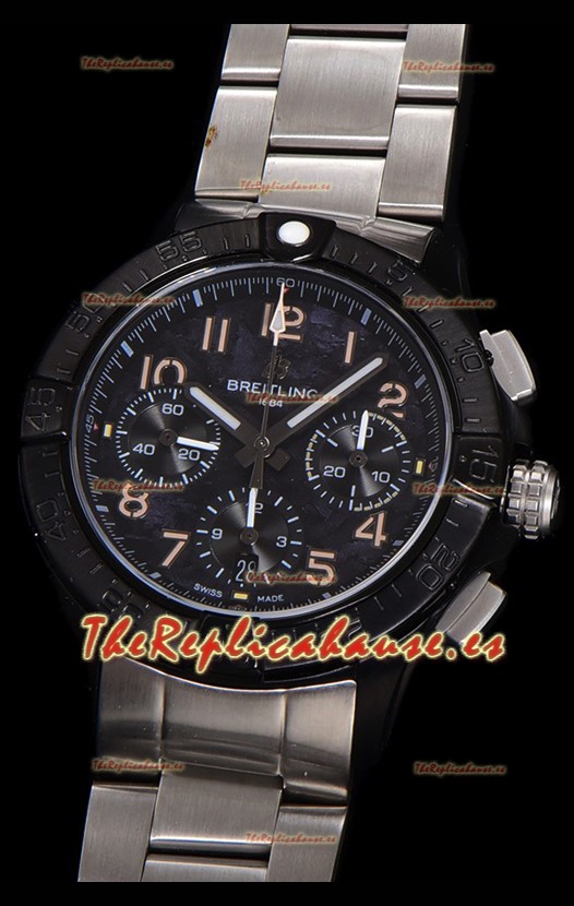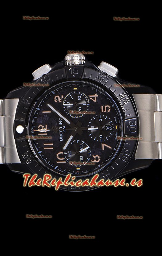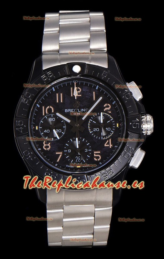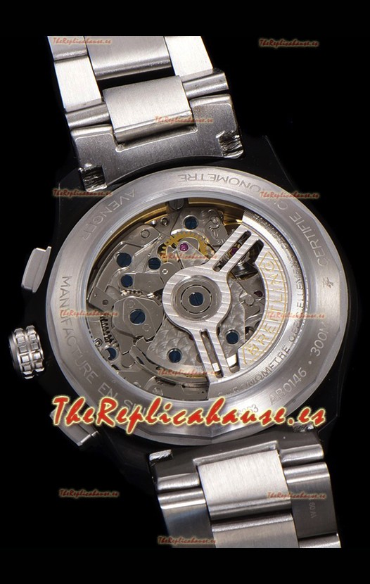 Caja de Acero 904L con Revestimiento DLC completada con Marcas y Detalles Breitling como en los originales.